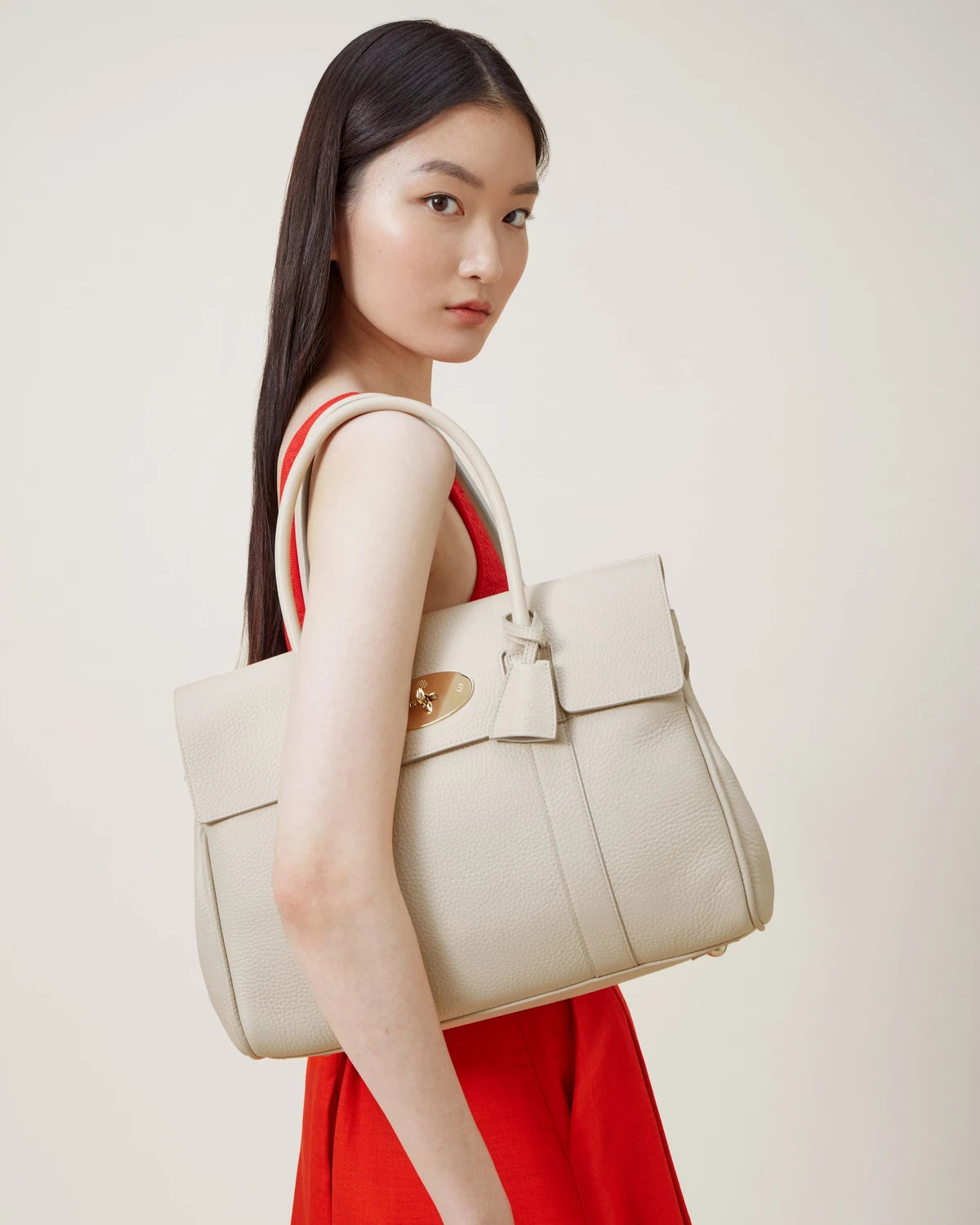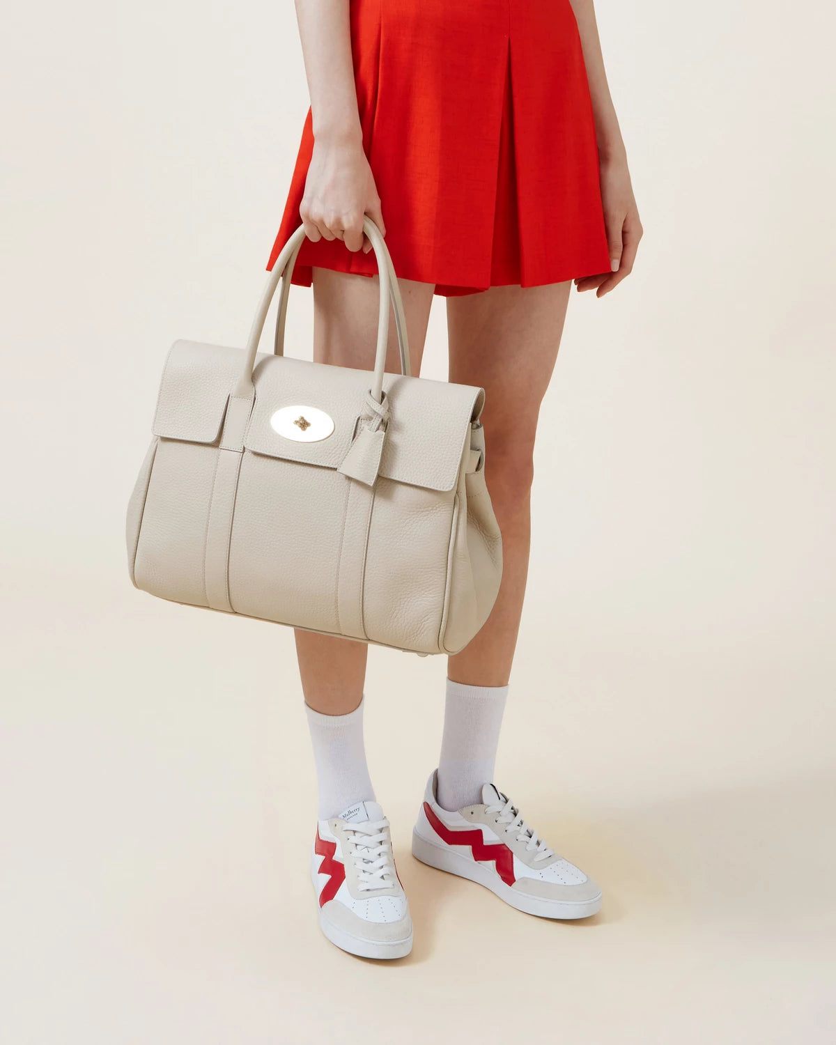 The Mulberry Bayswater Heavy Grain delivers timeless British luxury with structured elegance and practical functionality. Crafted from premium heavy grain leather in sophisticated cream, featuring the iconic postman's lock closure and signature tree embossing. The structured silhouette and classic proportions make this an enduring investment piece for discerning wardrobes.