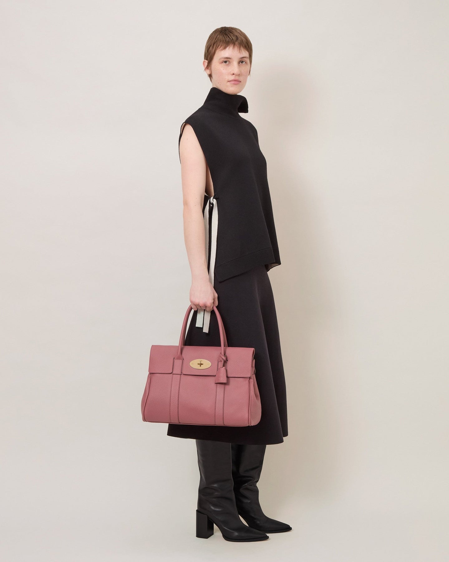 The Mulberry Bayswater Heavy Grain delivers timeless British luxury with architectural structure and everyday functionality. Crafted from signature heavy grain leather in dusty rose, featuring the iconic postman's lock closure and refined proportions. The structured silhouette and premium craftsmanship create an investment piece that transcends seasonal trends.