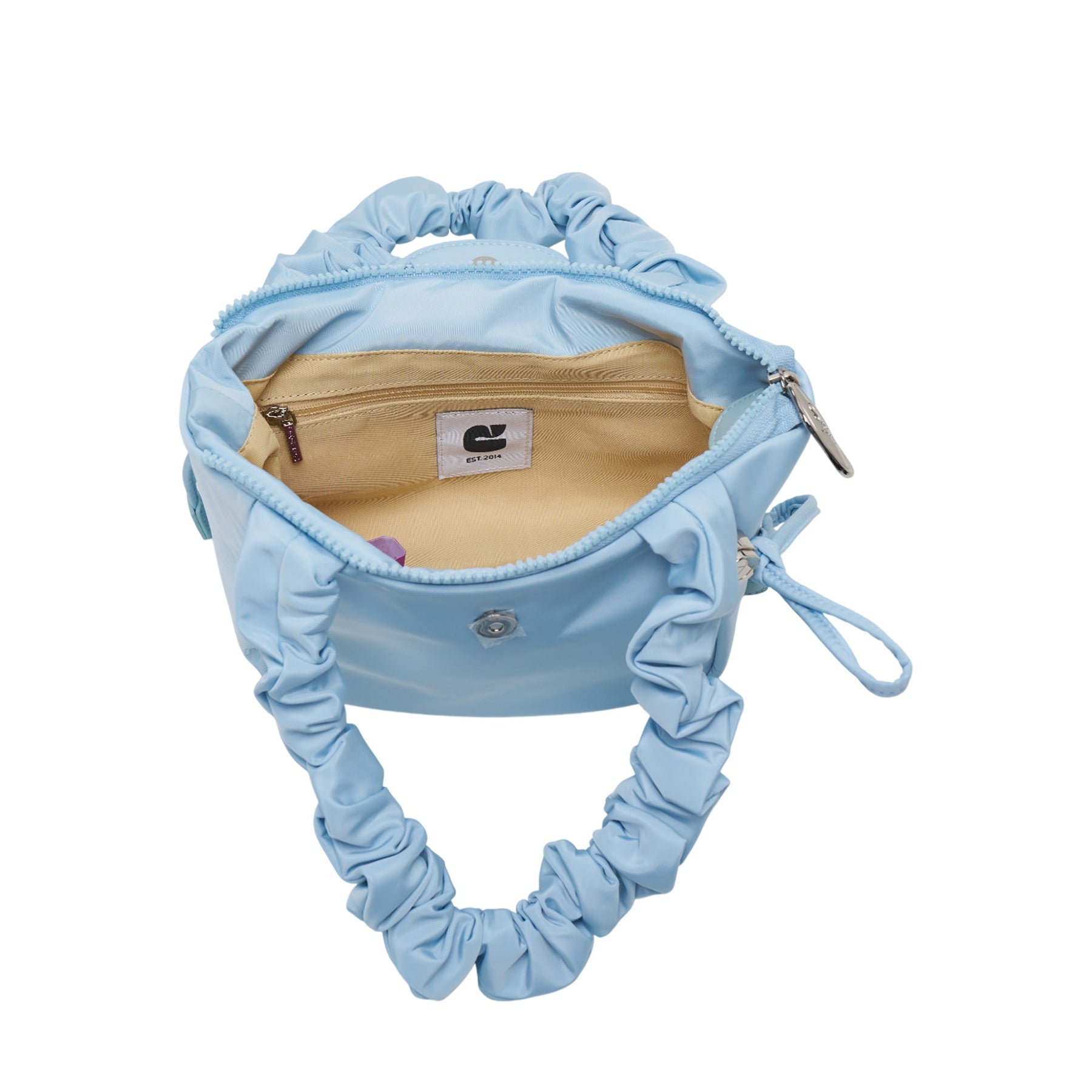 Mini tote and shoulder bag made of lightweight, softly shiny nylon material