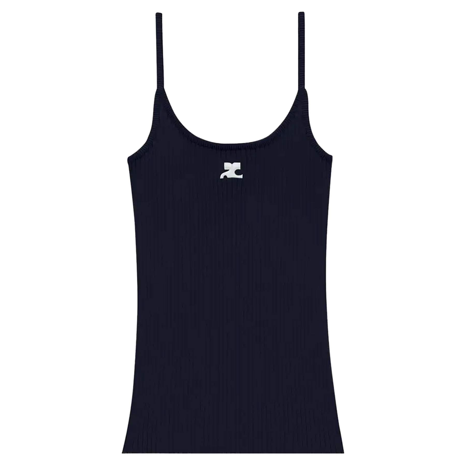 Iconic rib-knit tank top with round neckline and white AC logo on front.