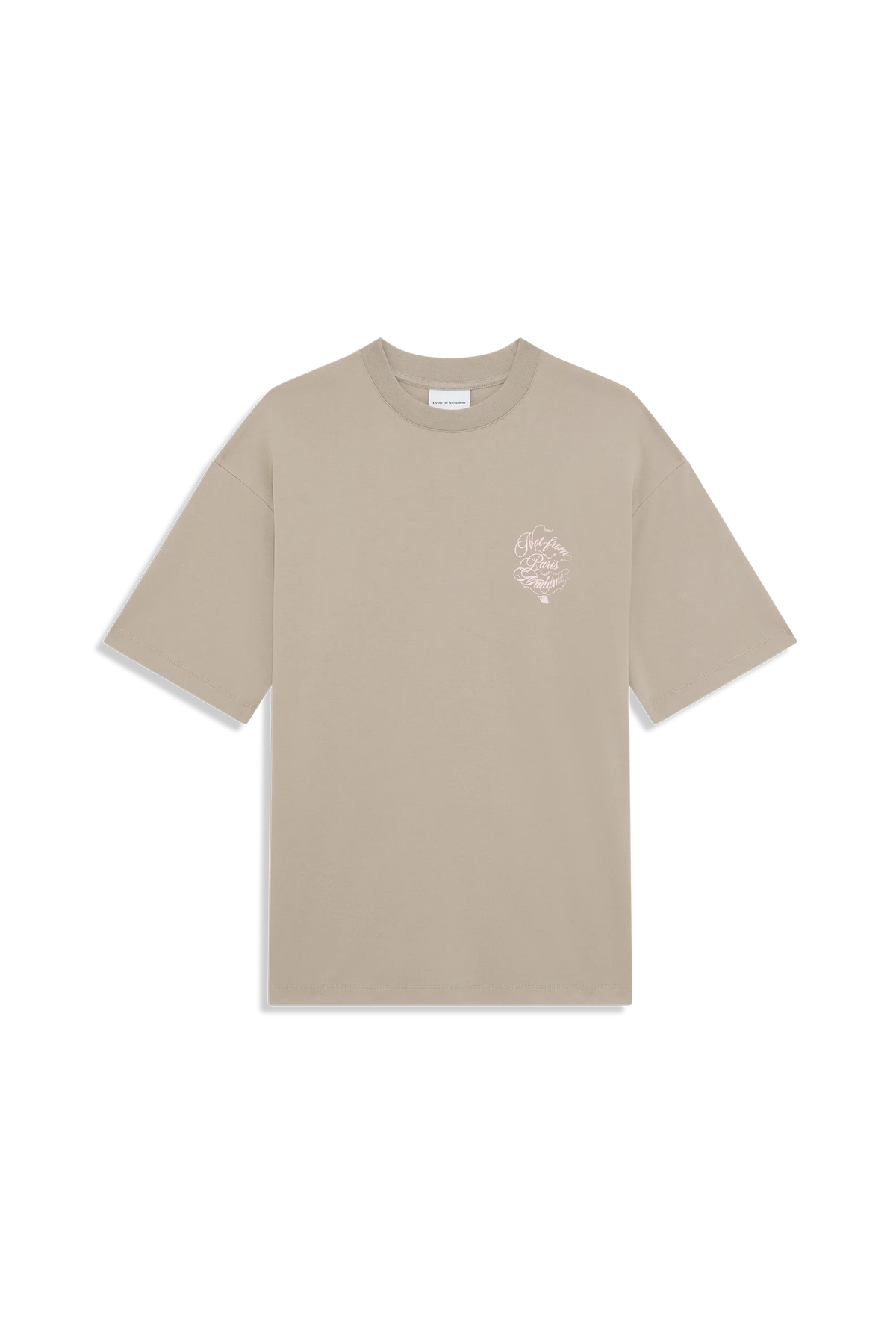 This beige 100% cotton interlock t-shirt with a ribbed neckline features the Slogan Vignes print on the front and back.