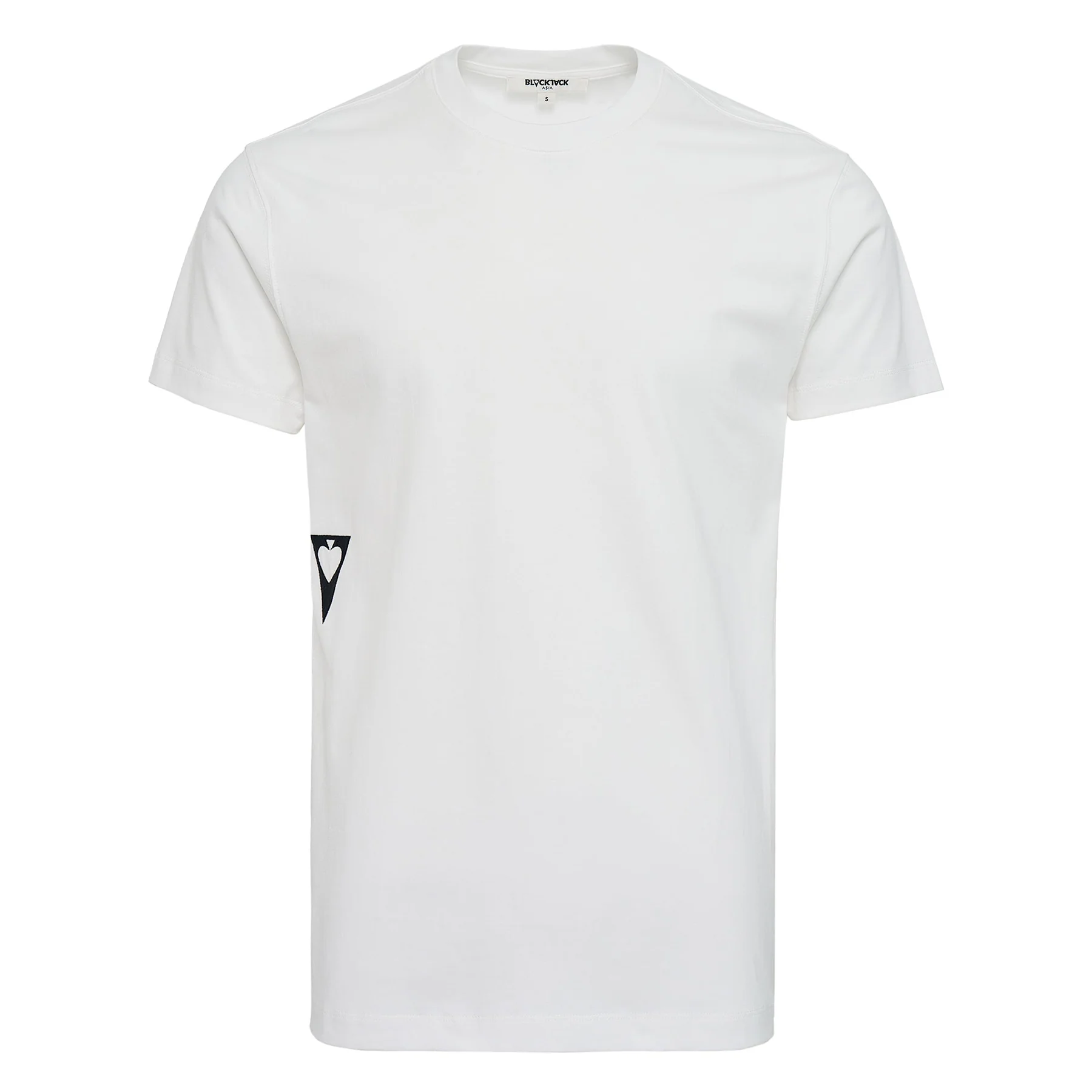 The Blackjack Embroidery Icon Logo T-Shirt delivers understated streetwear style with premium comfort and subtle branding. Crafted from soft cotton in clean white, featuring a small embroidered triangular logo detail on the front. The classic crew neck silhouette and quality construction create a versatile wardrobe essential for casual wear.