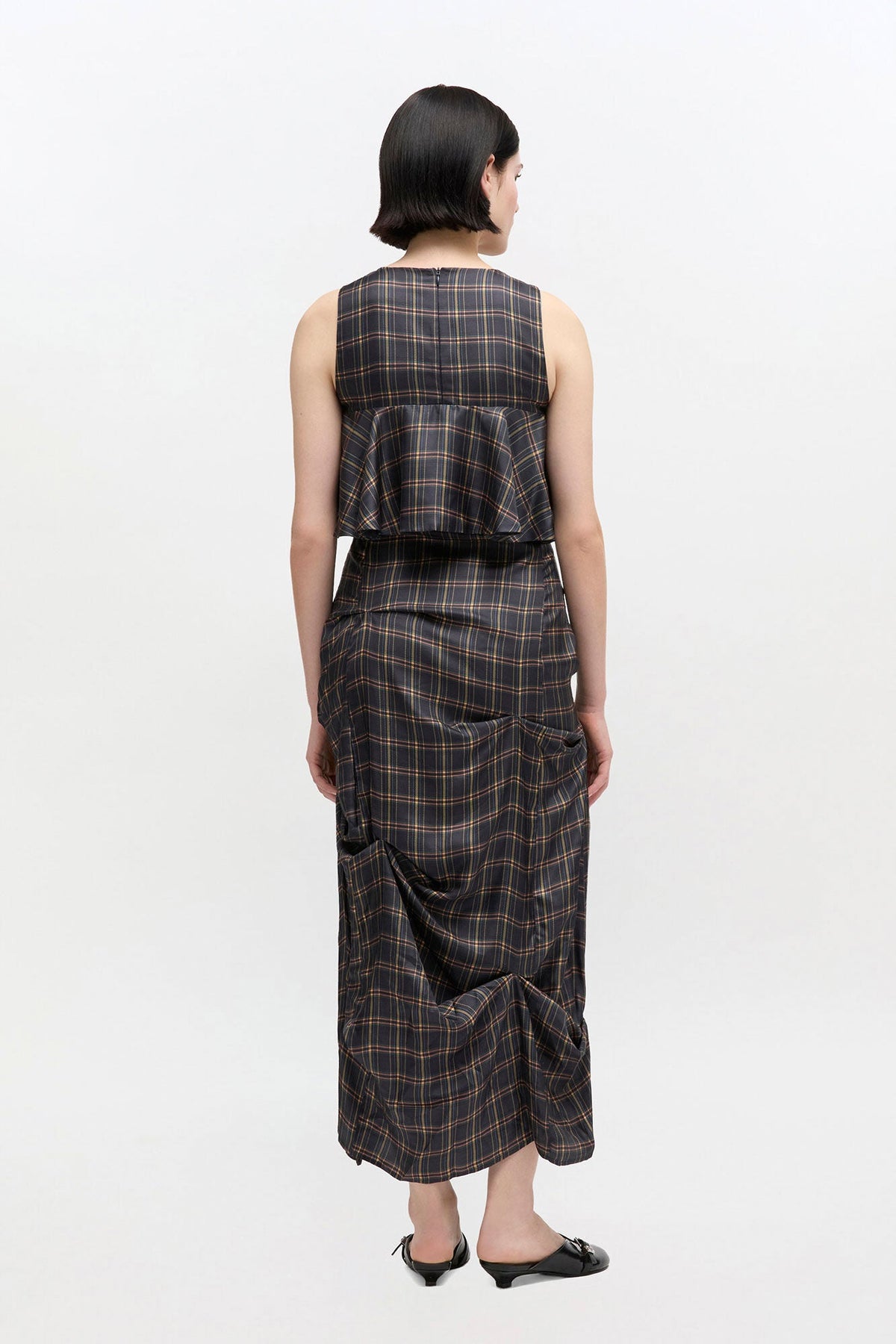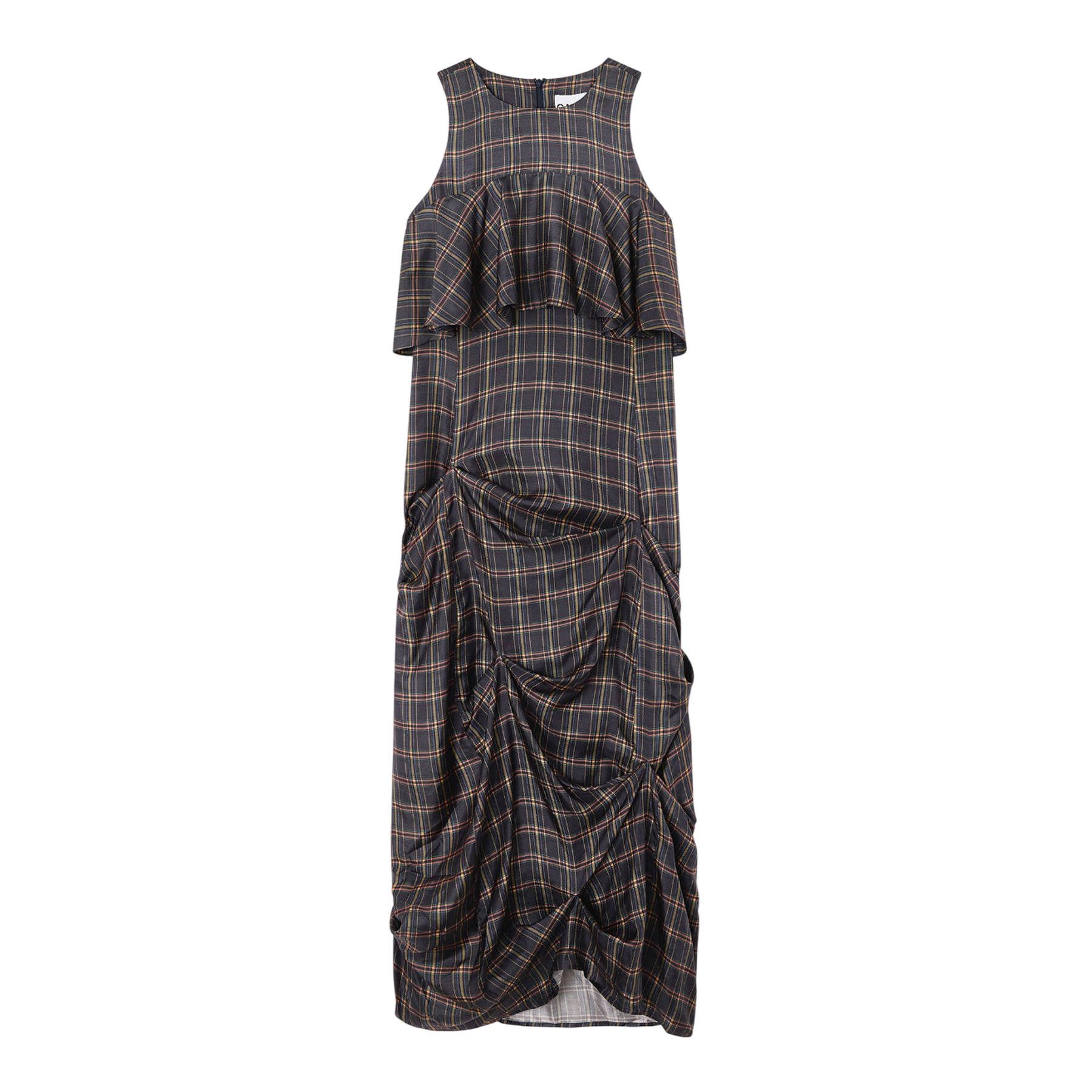 Silk Twill Long Ruffle Dress