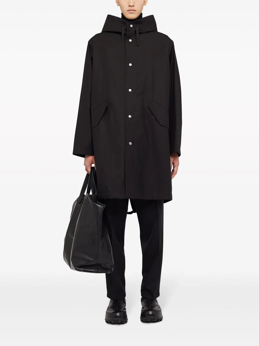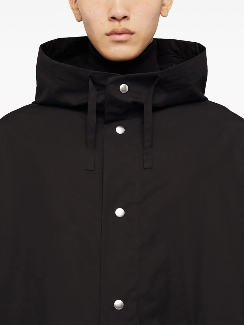 Merging minimalist style with functionality, this parka coat from Jil Sander is constructed from cotton into an slightly oversized silhouette. Featuring a cosy hood and press-stud fastening, the contrasting logo print to the rear offers a branded touch.