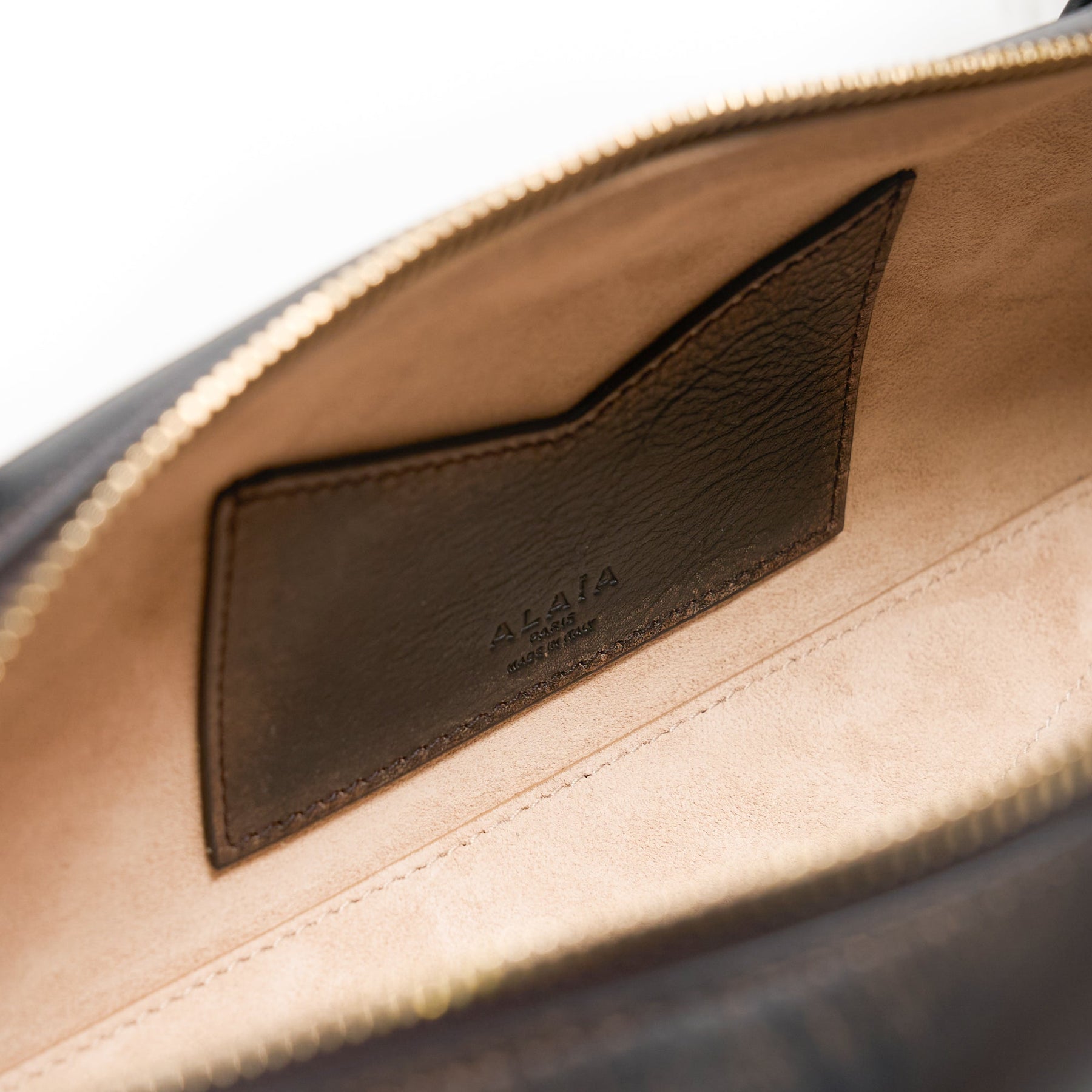 ALAÏA Le Teckel Medium Treated Calf bag delivers sophisticated elegance with distinctive sculptural design and premium functionality. Crafted from luxurious treated calfskin leather in rich black, featuring the signature kiss-lock closure and refined metal hardware. The structured silhouette and iconic ALAÏA craftsmanship create a timeless statement piece for discerning collectors.
