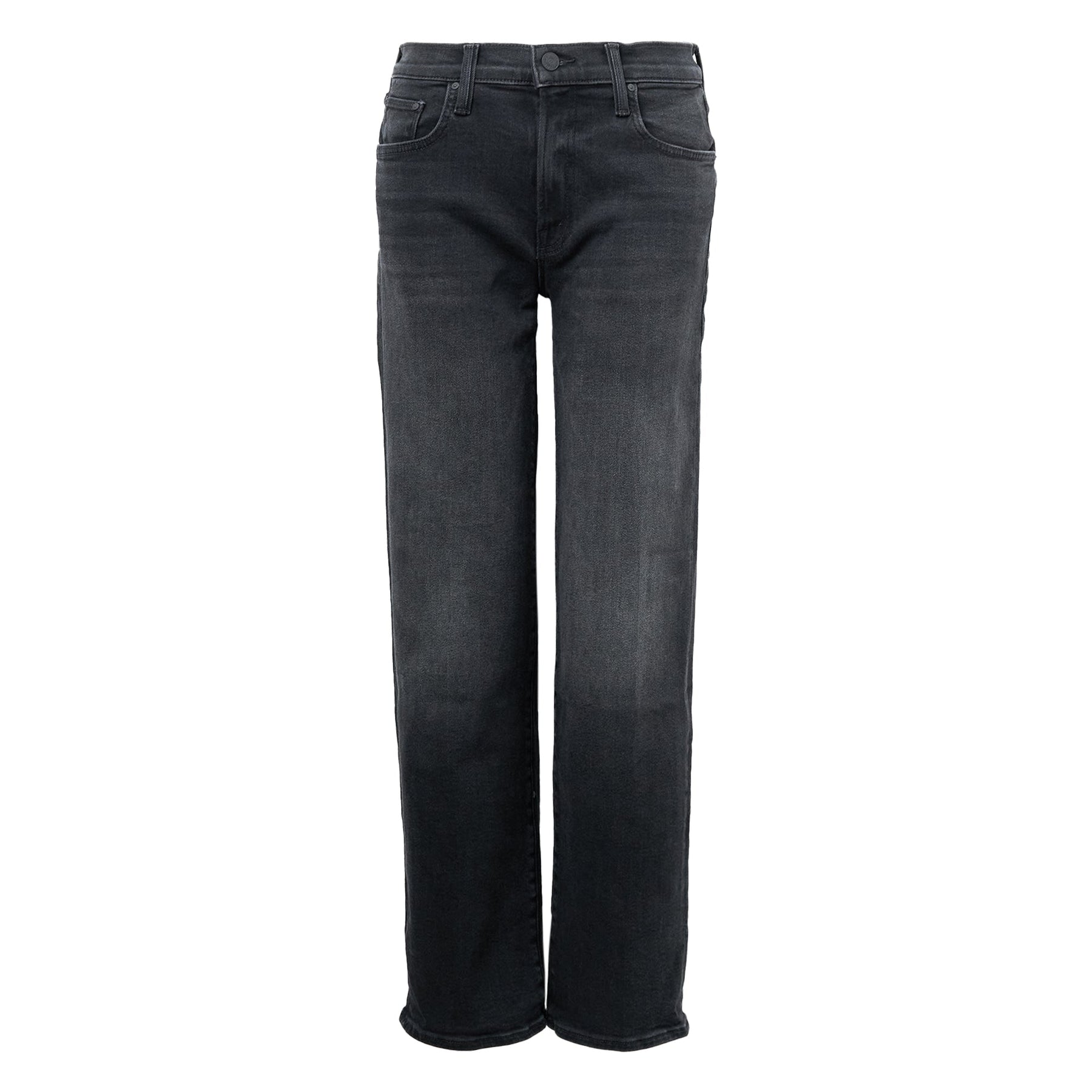 Mid-rise jeans with a wide straight leg, zip fly and clean approx 71.755cm inseam. Crafted from soft stretch denim, Spiked Hair Art Flair is a washed black with super-subtle fading and whiskering.