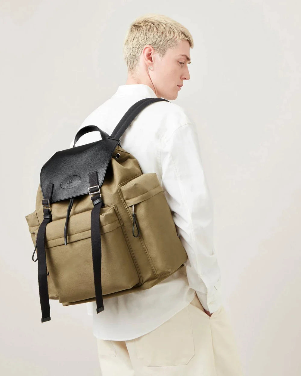 桑 Skye 超大背包橄欖色和黑色帆布和小號經典粒面