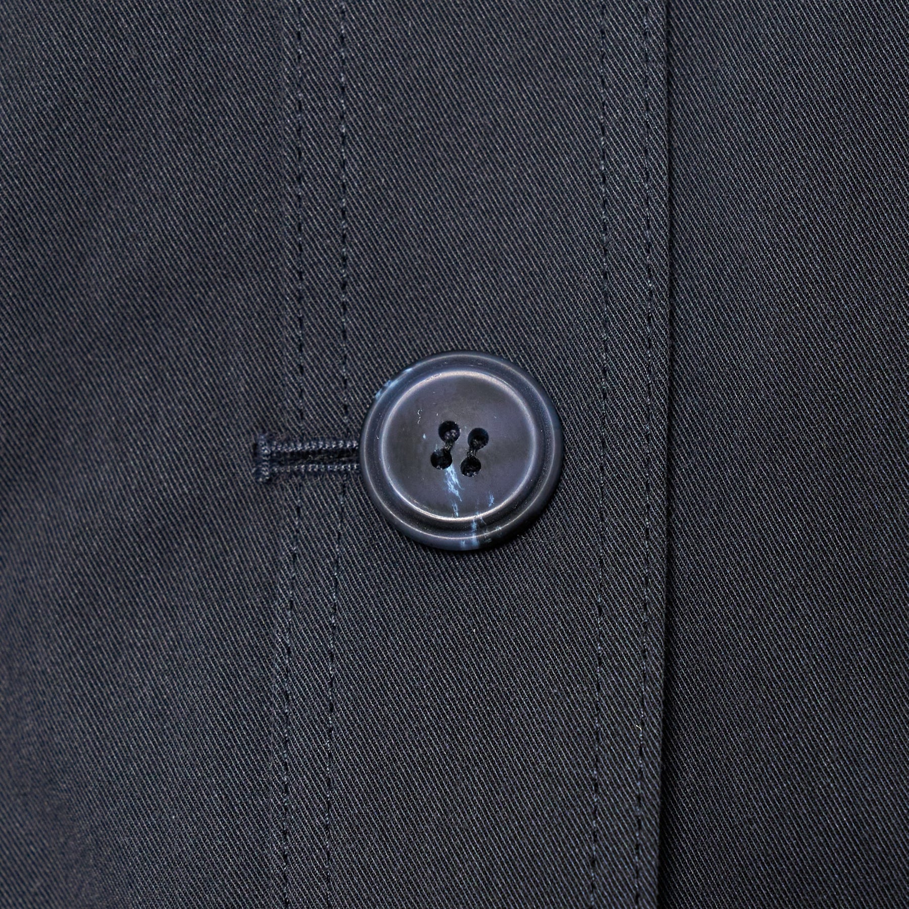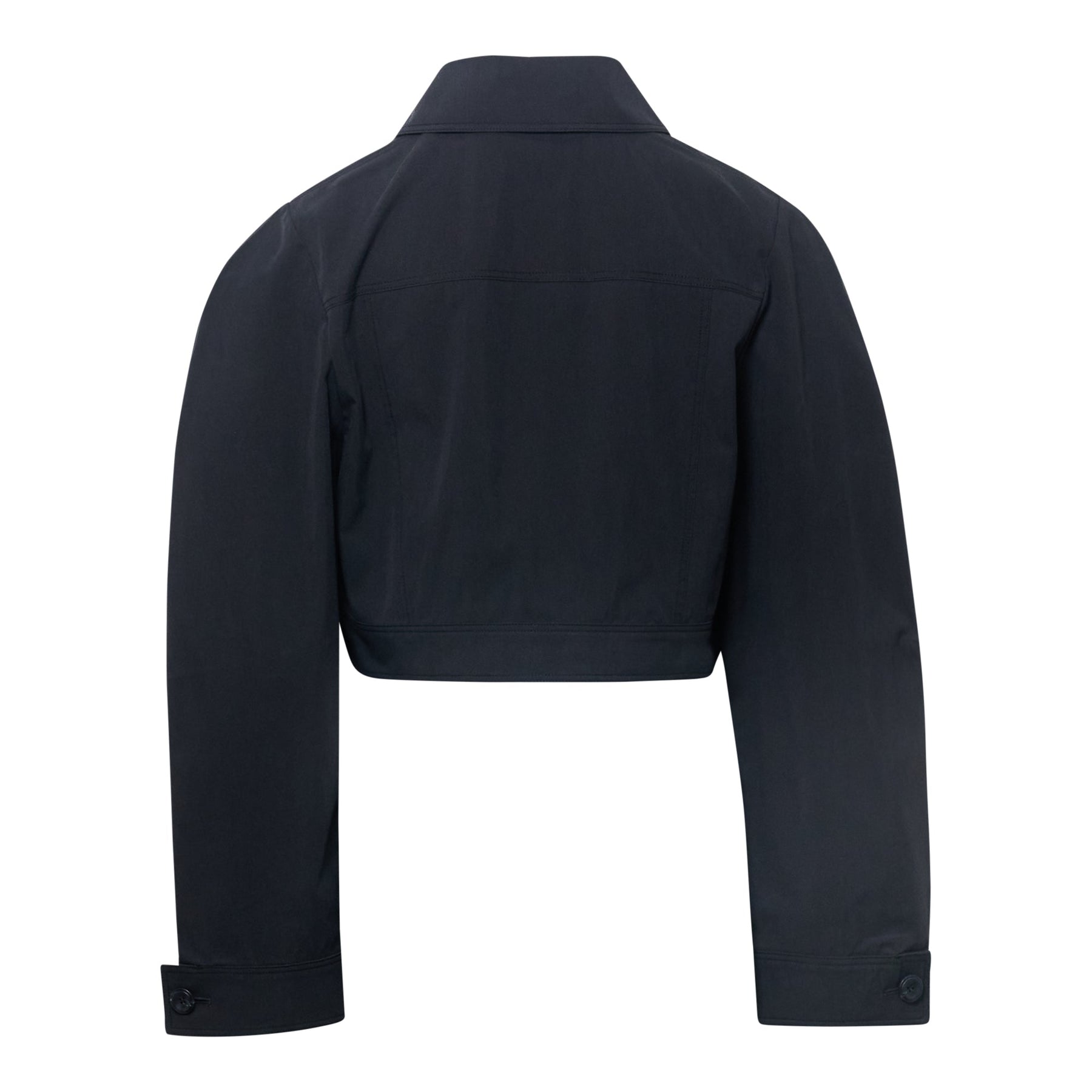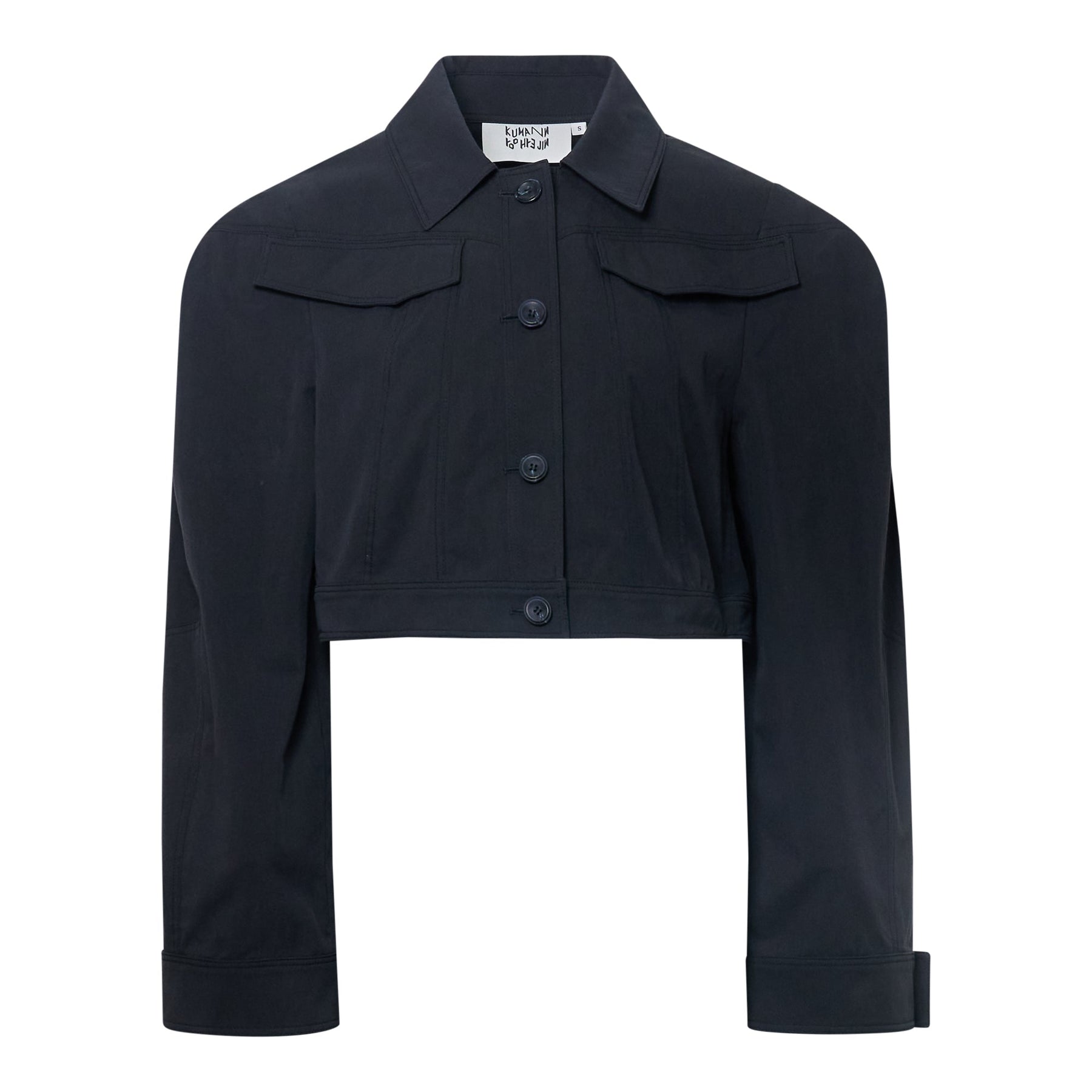KUMANN YHJ Signature Cropped Trucker delivers contemporary outerwear with architectural precision and modern utility. Crafted from structured cotton twill in deep navy, featuring dual chest pockets and clean minimalist construction. The cropped silhouette and signature tailoring create a versatile statement piece for layered contemporary looks.