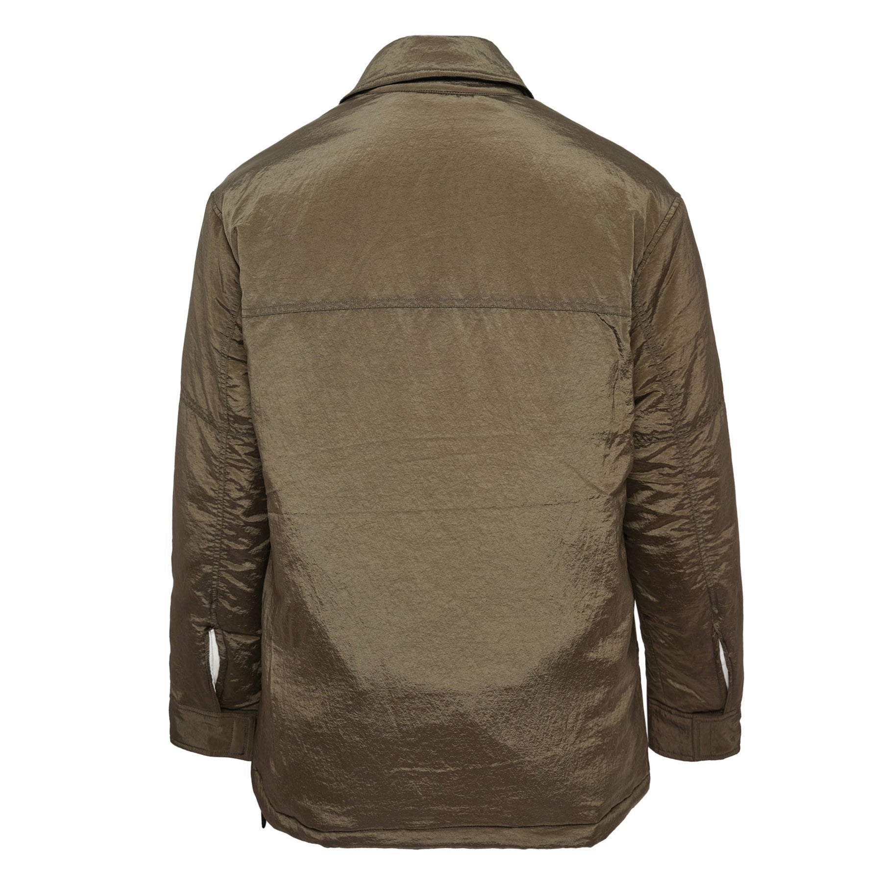 OAMC Peacemaker Padded Overshirt delivers contemporary outerwear with quilted insulation and structured tailoring. Crafted from premium olive green fabric with padded construction throughout, featuring chest flap pockets and snap button closures. The hybrid shirt-jacket silhouette creates a versatile layering piece with refined utilitarian aesthetics.