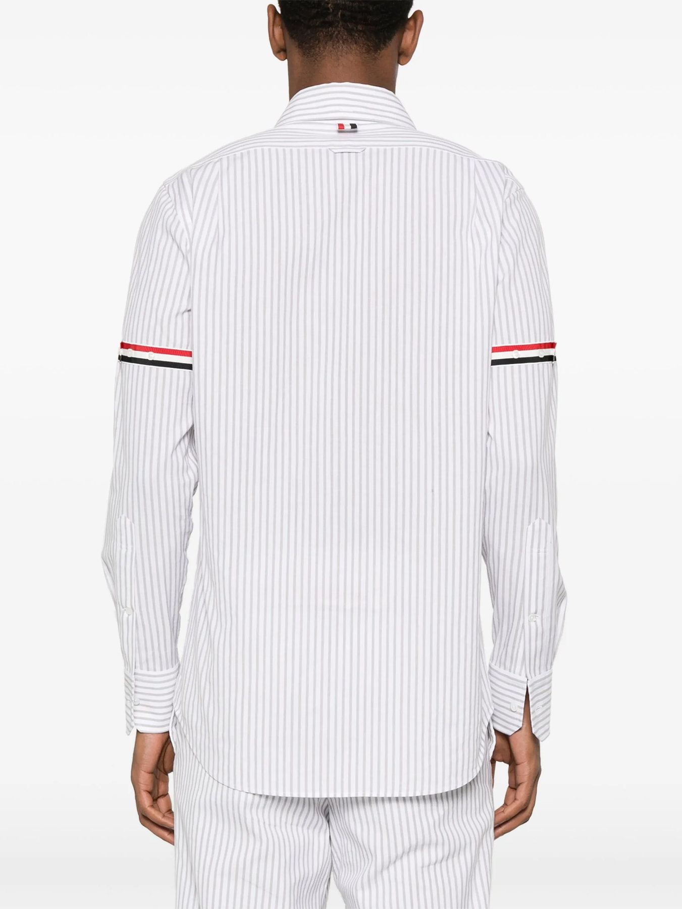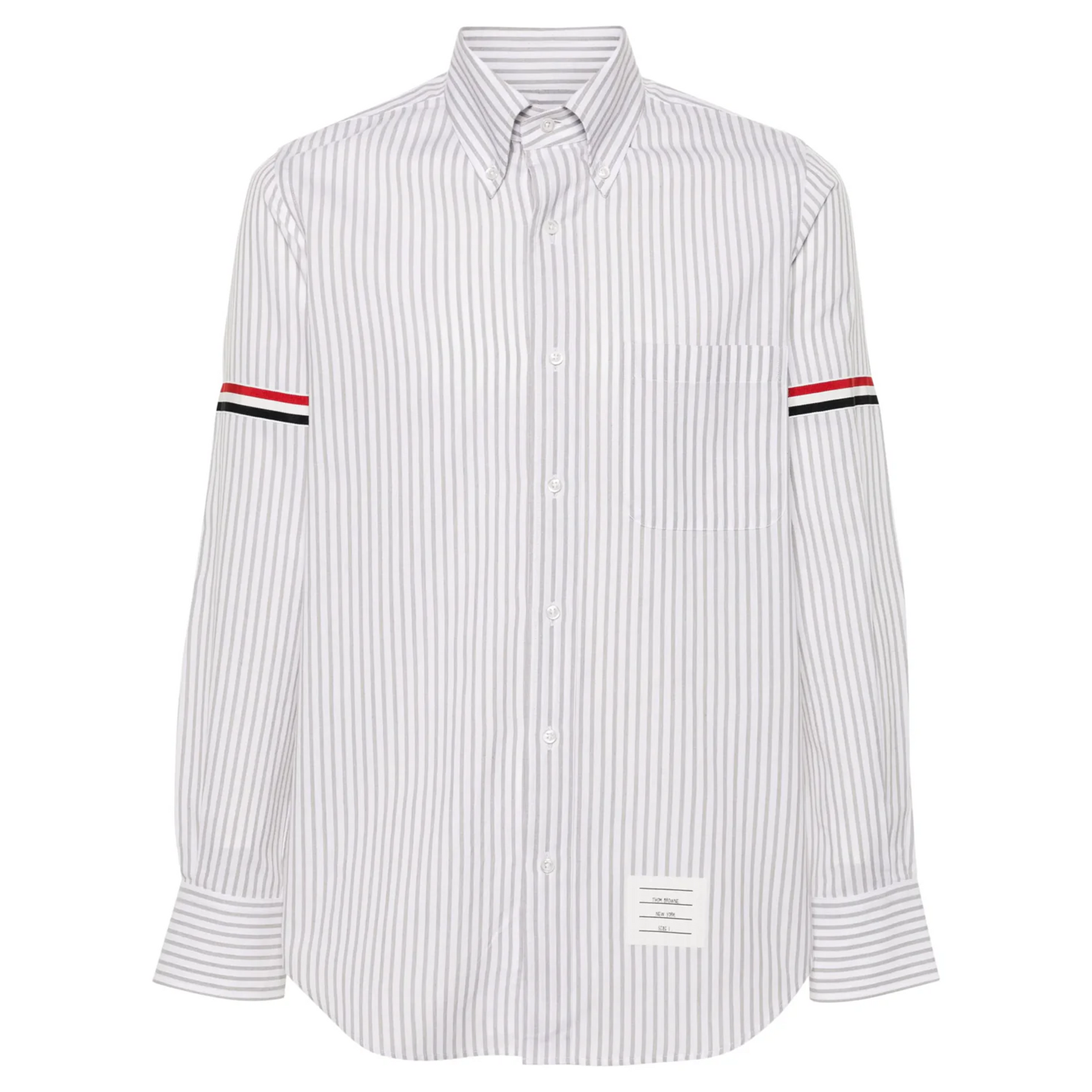 An elevated shirt enriched with signature Thom Browne emblems.