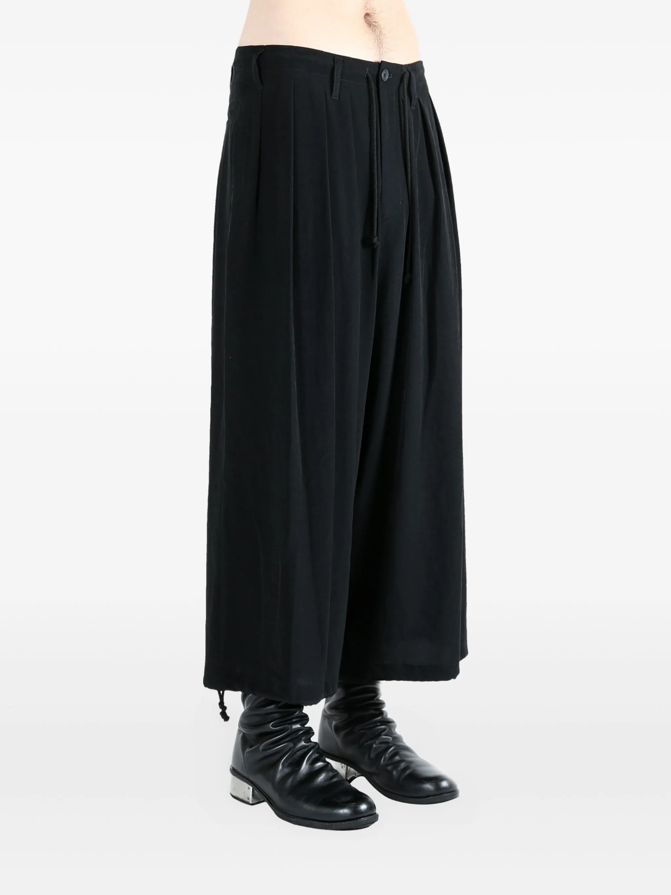 Made from Yohji Yamamoto's signature material, these balloon pants feature a blend of triacetate and polyester with a subtle sheen and luxurious look. The plain weave incorporates Strong-Twist weft yarns for enhanced drapery, offering a rich texture.